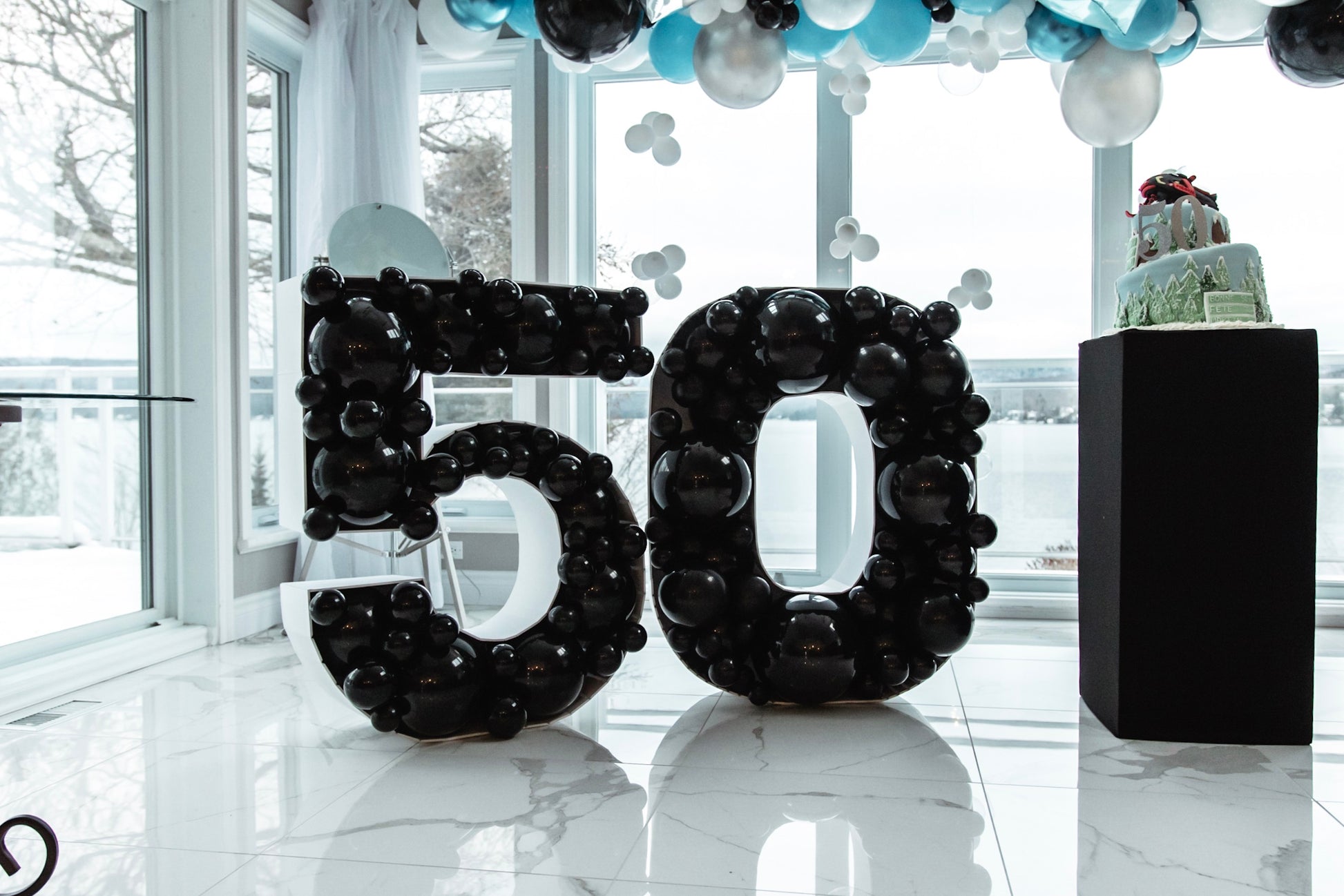• Chiffres mosaïque géants « 50 » remplis de ballons noirs