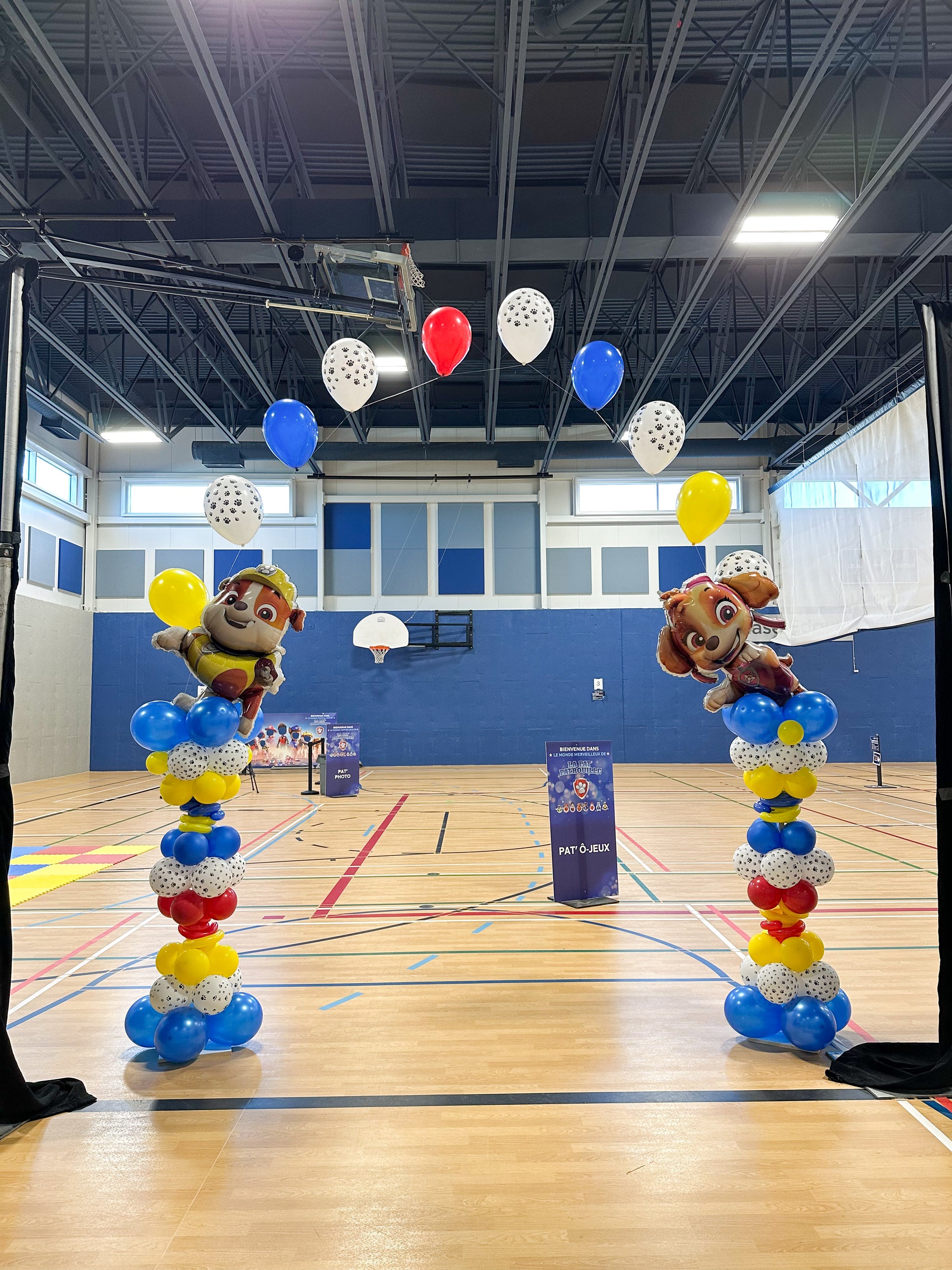 Deux colonnes de ballons colorées avec ballons mylar géants thématiques