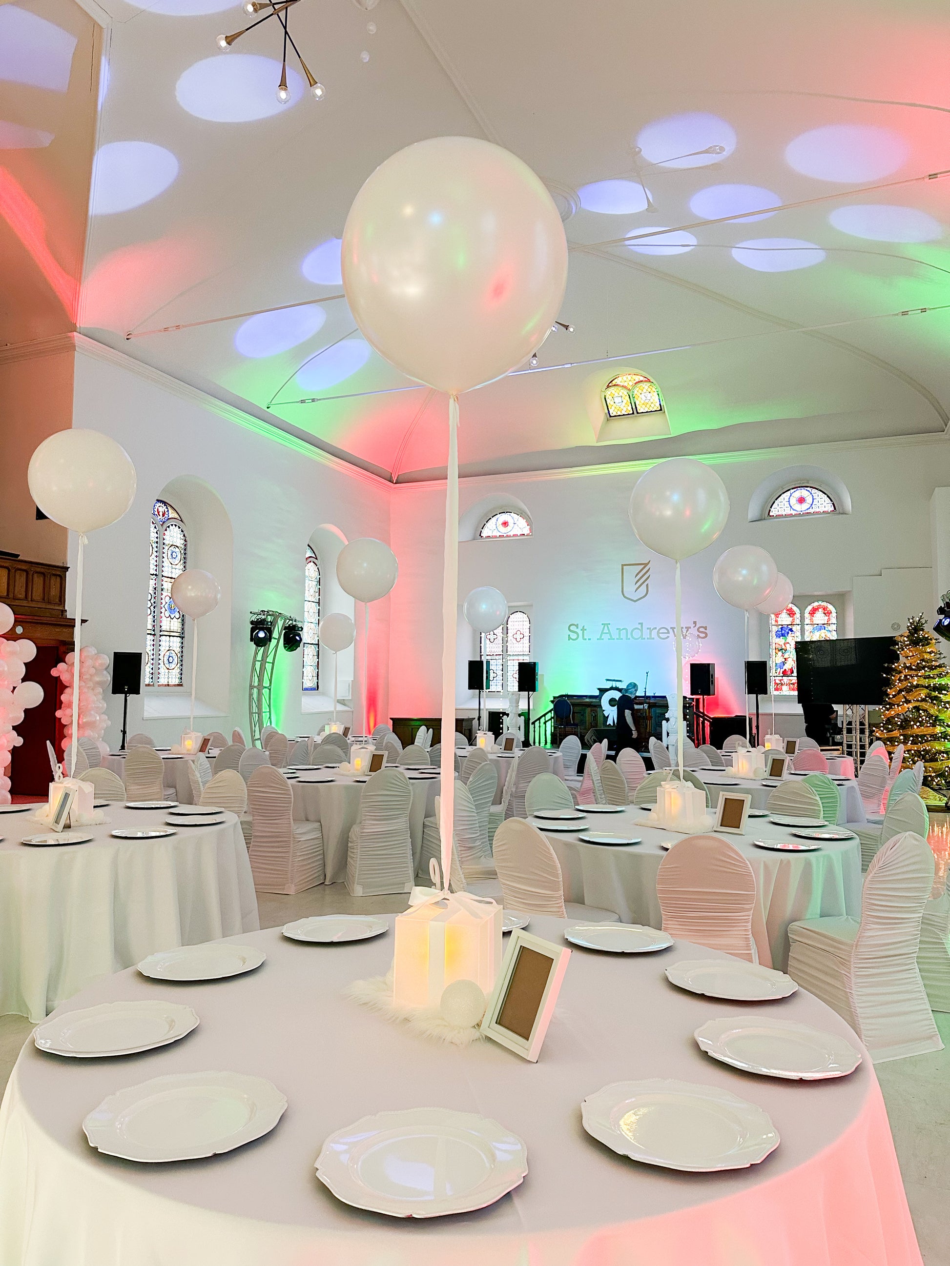 Apportez une touche chic et moderne à vos réceptions avec nos ballons géants de 24 pouces gonflés à l’hélium 🎈. Placés au centre des tables, ils créent une ambiance aérienne et festive tout en donnant de la hauteur et de la légèreté à votre décor.