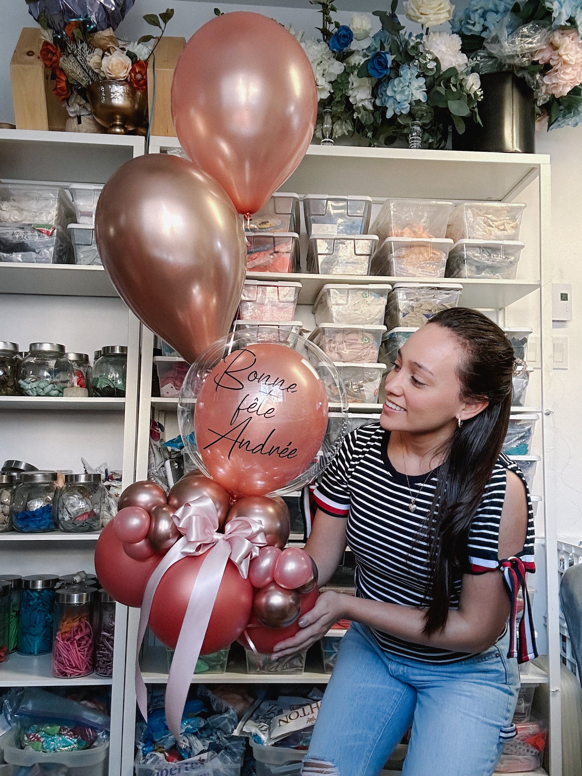 Arrangement de ballons qui comprend 2 ballons gonflés à l’hélium, un arrangement de ballons personnalisés