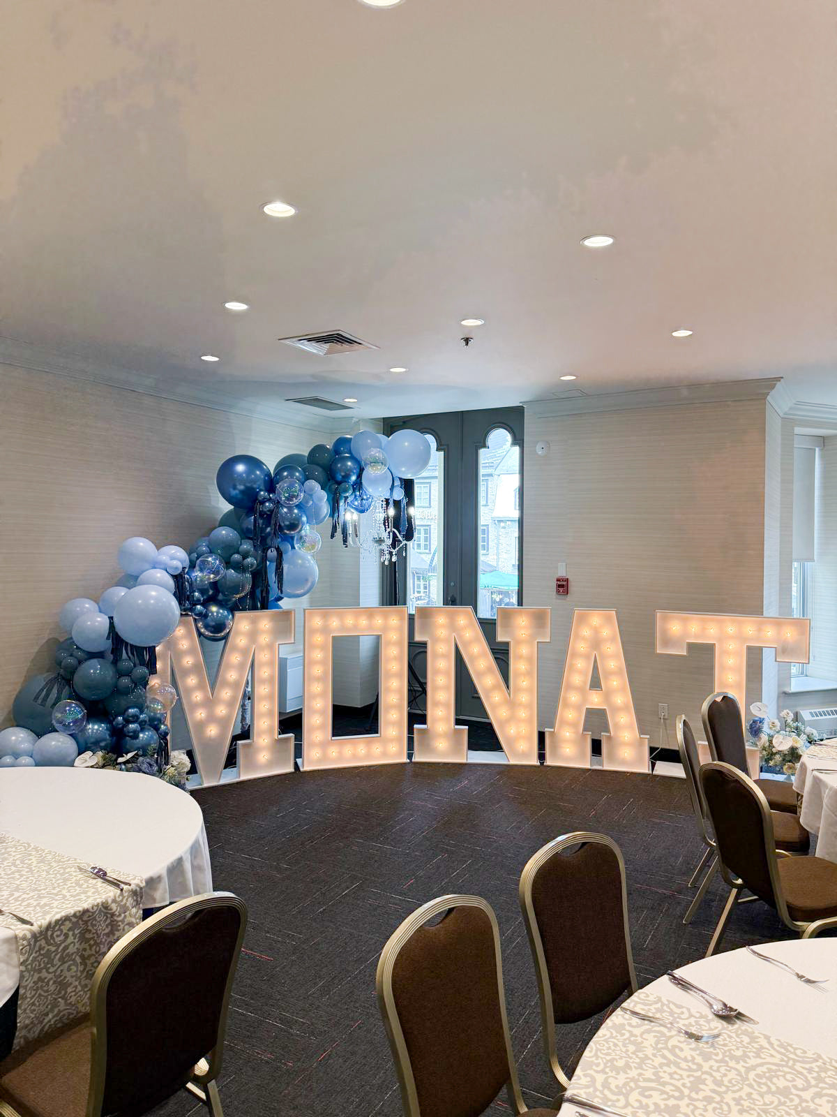 • Lettres géantes lumineuses « MONAT » créant un point focal spectaculaire