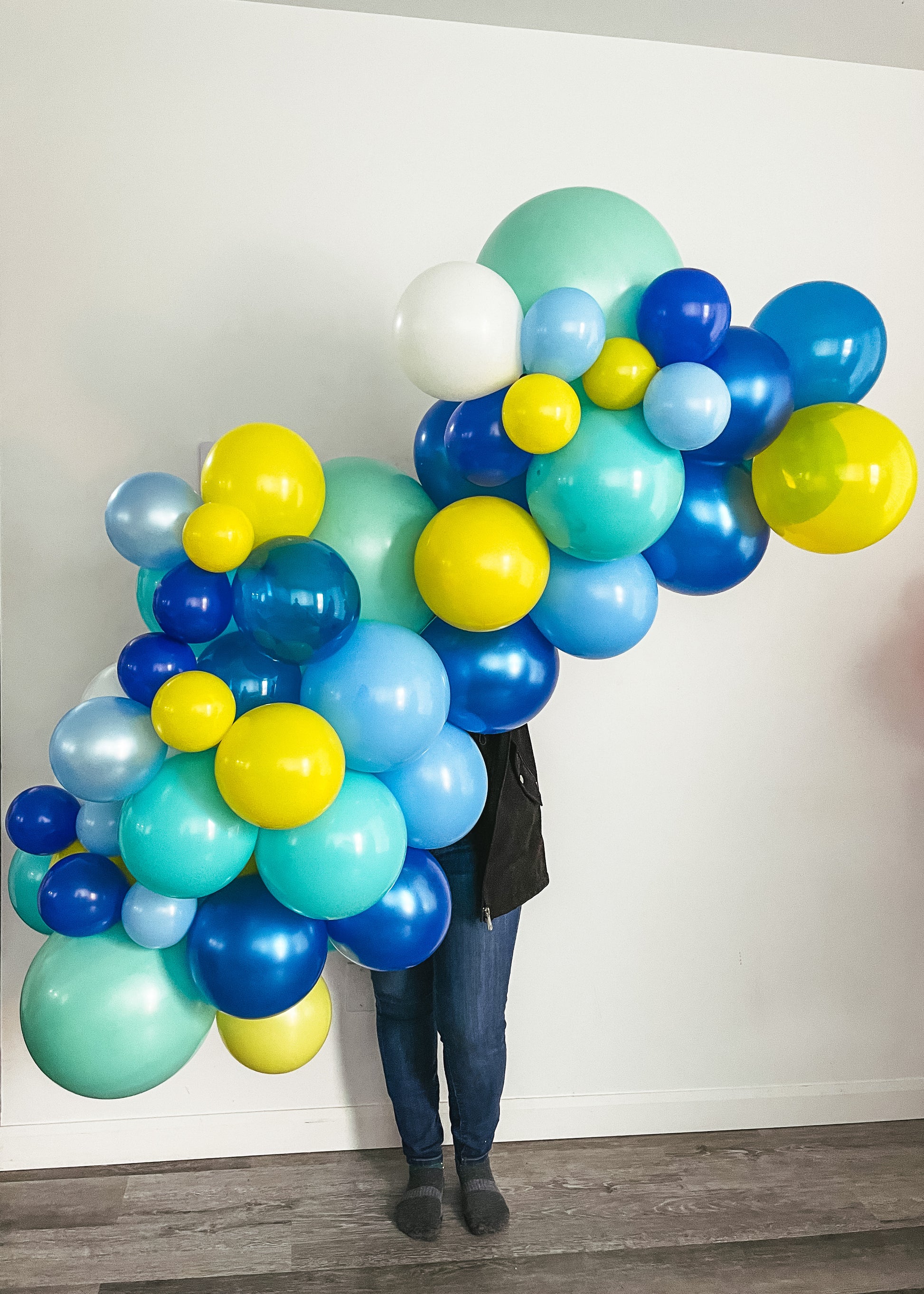 - Guirlande de ballons de latex biodégradables de différentes grandeurs gonflés à l'air