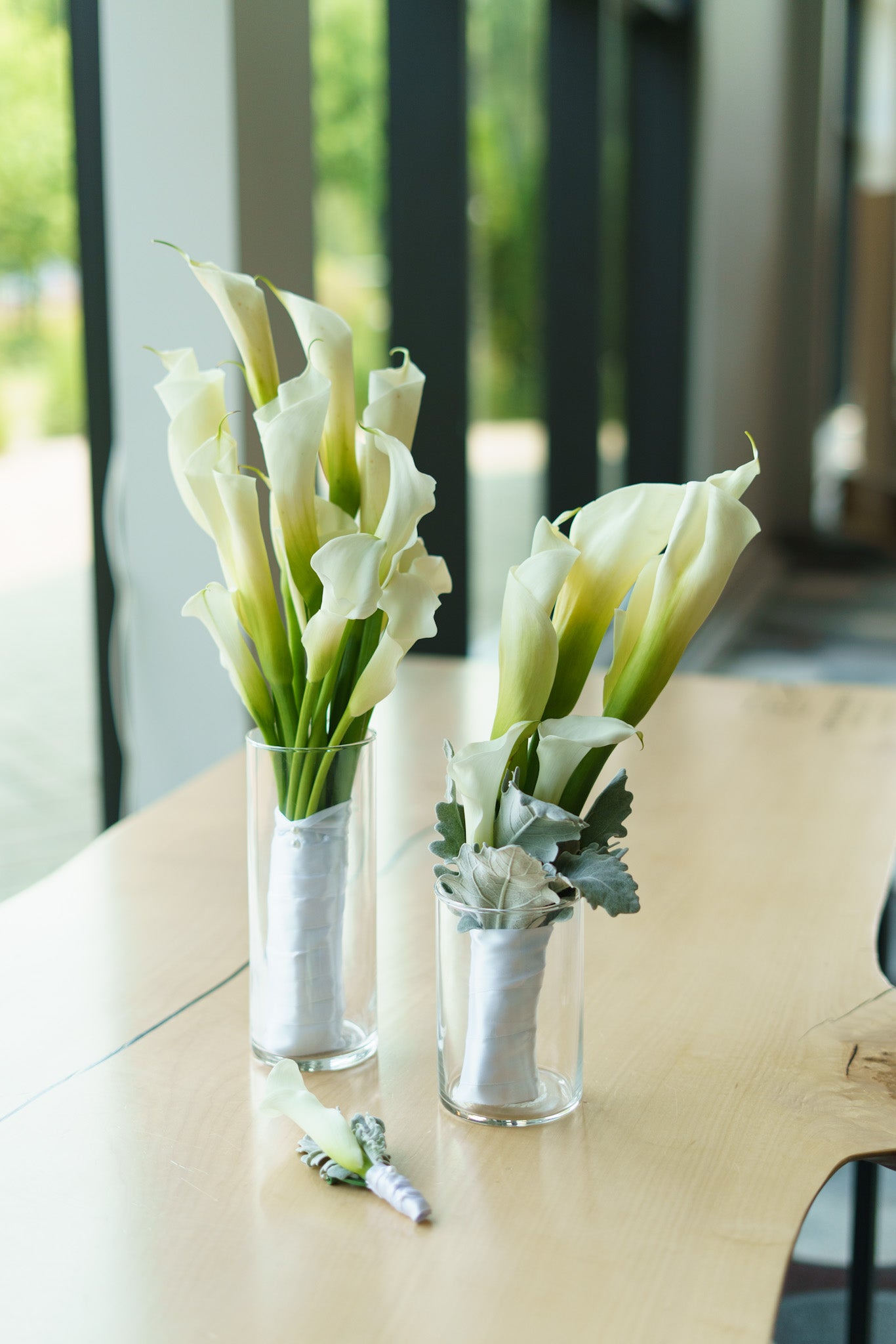 • Bouquet de marié, bouquet de demoiselle d'honneur et boutonnière en fleurs naturelles